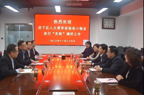2023年11月29日下午,歷下區人大副主任杜寶現,千佛山街道黨工委書(shū)記張保國,歷下區人大常委會(huì )人聯(lián)處處長(cháng)于艷文,千佛山街道人大工作室主任朱曉紅,歷下區人大代表、山東大空間電器有限公司總經(jīng)理王樂(lè )芝,千佛山街道人大工作室秘書(shū)陳道千等蒞臨濟南連心物業(yè)有限公司進(jìn)行“雙聯(lián)”工作調研。歷下區人大代表、濟南連心物業(yè)有限公司黨支部書(shū)記、董事長(cháng)王宏勇,公司黨支部副書(shū)記、總經(jīng)理孟令乾,工會(huì )主席李寶建,辦公室主任孫耀先等參加調研匯報工作。