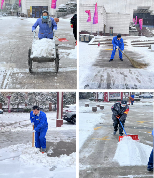12月11日清晨,濟南迎來(lái)了2023年的第一場(chǎng)雪。降雪給人們的出行帶來(lái)諸多不便,11日一早,針對降雪天氣對此公司迅速反應,第一時(shí)間對各項目的掃雪工作做出部署,啟動(dòng)應急預案,各項目員工提前到崗,展開(kāi)掃雪活動(dòng)。