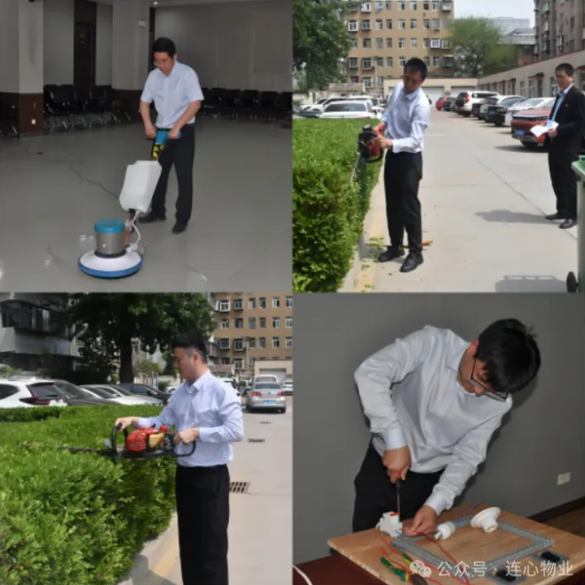 維修組:線(xiàn)路接駁要求、入室維修流程等;保潔組:衛生間清理、玻璃擦拭等;綠化組:草坪修剪、灌木整型等。消防組:滅火器使用展示、消防水袋連接展示等。