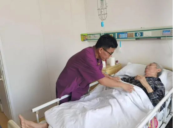 孫方祥老人長(zhǎng)期臥床,生活無(wú)法自理。老人的子女因工作繁忙,無(wú)法時(shí)刻陪伴在側(cè),日常照護(hù)成了難題。連心護(hù)工宰祥玉不僅在日常生活中給予老人無(wú)微不至的照顧,如喂食、擦洗身體、更換衣物等,更是在精神層面上給予了老人極大的慰藉。他不怕臟、不怕累,用實(shí)際行動(dòng)詮釋無(wú)陪病房“親情陪護(hù)”的深刻內(nèi)涵。在宰祥玉的專業(yè)、精心照料下,老人的身體狀況得到有效維持,更重要的是,老人的心靈得到極大的安慰。