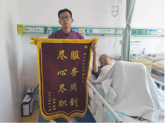 2024年8月28日,濟(jì)南連心陪護(hù)服務(wù)有限公司護(hù)工宰祥玉收到客戶送來(lái)的“服務(wù)周到 盡心盡職”錦旗,這是對(duì)連心陪護(hù)駐山東電力中心醫(yī)院無(wú)陪病房服務(wù)品質(zhì)的高度認(rèn)可,更是對(duì)連心護(hù)工宰祥玉專業(yè)服務(wù)、無(wú)私奉獻(xiàn)精神的誠(chéng)摯贊揚(yáng)。