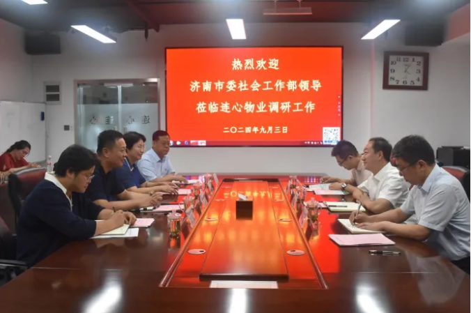 市委社會(huì )工作部副部長(cháng)許可、市委社會(huì )工作部三處處長(cháng)滿(mǎn)孝勇,歷下區委社會(huì )工作部部長(cháng)、“兩新”工委書(shū)記賈龍及有關(guān)科室負責同志,千佛山街道人大工作室主任朱曉紅及黨建工作分管負責同志參加調研。連心物業(yè)黨支部書(shū)記、董事長(cháng)王宏勇等公司高層參加調研匯報工作。