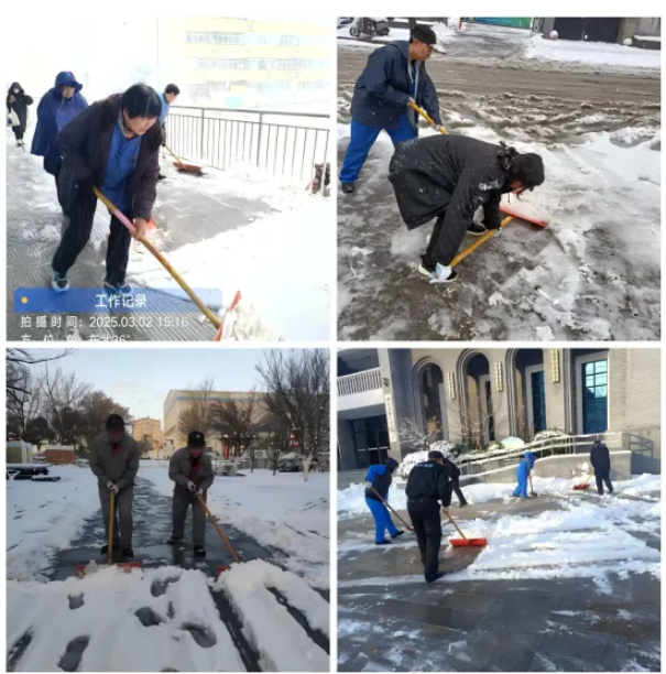 齊心協(xié)力保障暢通。為確保業(yè)主出行安全,連心物業(yè)各項目員工分工明確,配合默契,有的負責清掃積雪,有的負責撒布融雪劑,有的負責引導車(chē)輛通行。經(jīng)過(guò)數小時(shí)的奮戰,各單位主干道等區域積雪被清理干凈,為業(yè)主開(kāi)辟出一條條“安全通道”。