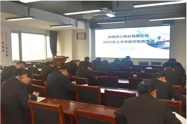 2025年4月11日下午,濟南連心物業(yè)有限公司2025年上半年規章制度考試在公司1701會(huì )議室舉行。公司高管、部門(mén)經(jīng)理、項目經(jīng)理、辦公室人員、項目?jì)惹诘?0余人參加此次考試,此次考試采用筆試閉卷的形式進(jìn)行。
