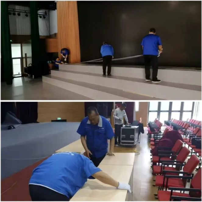 活動(dòng)籌備期間,連心物業(yè)駐濟南外國語(yǔ)學(xué)校項目部各服務(wù)條線(xiàn)緊密協(xié)作,以高度的責任感和使命感踐行“用心去做,快樂(lè )服務(wù)”的服務(wù)宗旨,全力為演出保駕護航。綠化人員提前養護綠植,修剪枝葉、補植花壇草坪,營(yíng)造出綠意盎然的校園環(huán)境;保潔人員化身“環(huán)境美容師”,對校園環(huán)境展開(kāi)“地毯式”清潔,從演出場(chǎng)地到周邊道路,從觀(guān)眾席到后臺區域,每一處角落都細致清掃,確保校園整潔如新;工程維修人員對電力和舞臺設備進(jìn)行全面檢查,及時(shí)排除隱患,精心搭建舞臺,保障設備零故障運行;客服人員化身熱情向導,在校園入口、場(chǎng)館通道等重要點(diǎn)位引導人流,協(xié)助維護現場(chǎng)秩序,及時(shí)協(xié)調解決現場(chǎng)突發(fā)問(wèn)題,為觀(guān)眾提供貼心的問(wèn)詢(xún)、指引服務(wù)。