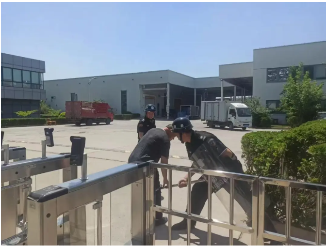2025年6月17日防暴恐襲擊演練。模擬不明身份人員強行闖入廠(chǎng)區并意圖實(shí)施破壞。項目秩序維護隊員第一時(shí)間發(fā)現異常并拉響警報。應急防暴小組攜帶防暴盾牌、鋼叉、警棍等裝備迅速趕赴現場(chǎng),通過(guò)戰術(shù)配合與喊話(huà)震懾,成功將“暴徒”制服并帶離。演練重點(diǎn)檢驗了秩序維護人員的警惕性、信息通報流程、應急處置戰術(shù)及與相關(guān)部門(mén)的聯(lián)動(dòng)機制,有效提升了廠(chǎng)區反恐防暴的實(shí)戰水平。