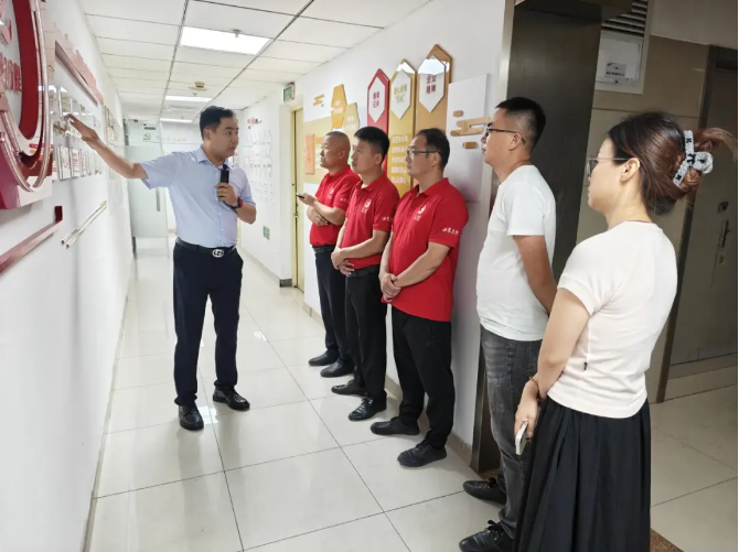 黨支部副書(shū)記、總經(jīng)理曹立陪同金源物業(yè)一行參觀(guān)企業(yè)文化長(cháng)廊,并圍繞公司發(fā)展歷程、企業(yè)文化、黨建工作及所獲榮譽(yù)進(jìn)行交流。通過(guò)互動(dòng)交流,金源物業(yè)代表對連心物業(yè)企業(yè)文化、精細化管理體系與品牌化建設路徑有了更加直觀(guān)、深刻的認識。
