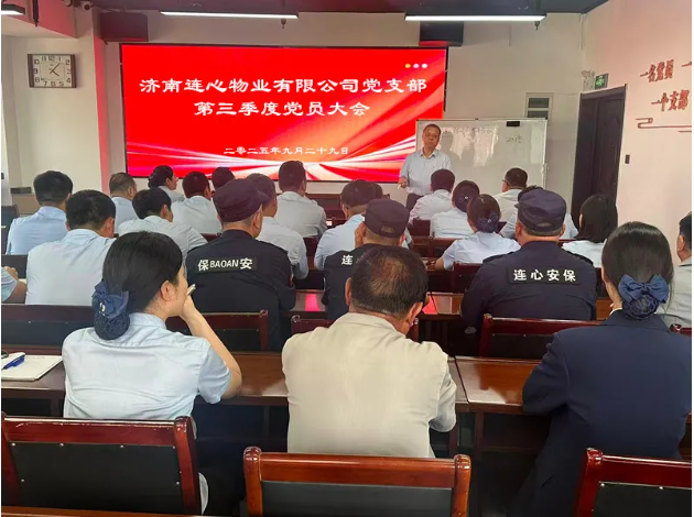 2025年9月29日下午,濟南連心物業(yè)有限公司黨支部在1701會(huì )議室召開(kāi)第三季度黨員大會(huì ),公司全體黨員、入黨積極分子及遞交入黨申請書(shū)人員48人參加本次大會(huì )。學(xué)習偉大抗戰精神、審議預備黨員轉正事宜等二個(gè)議程。