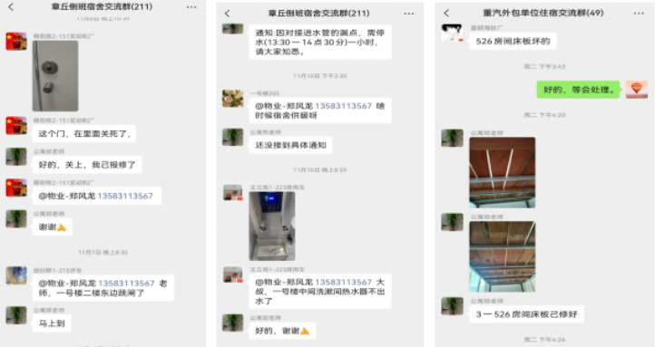 在維修方面,項目部確保24小時(shí)應急響應暢通無(wú)阻。當住宿職工反映問(wèn)題,項目部反應迅速,無(wú)論是照明故障、門(mén)鎖問(wèn)題還是水電應急,他們都能在最短時(shí)間內抵達現場(chǎng)并有效處置,為住宿職工營(yíng)造一個(gè)安全、安心的居住環(huán)境。