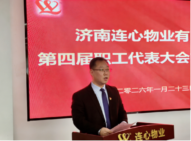 2026年1月23日,濟南連心物業(yè)有限公司工會第四屆職工代表大會第二次會議在公司總部會務(wù)中心順利召開。來自各項目職工代表57人參加此次會議。