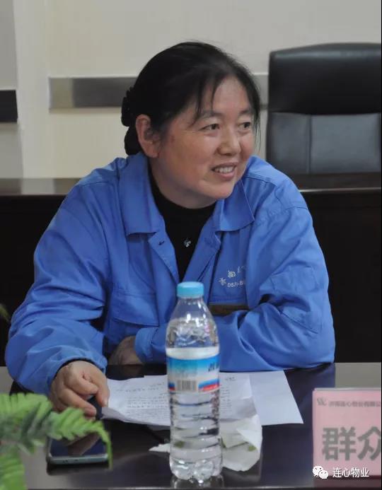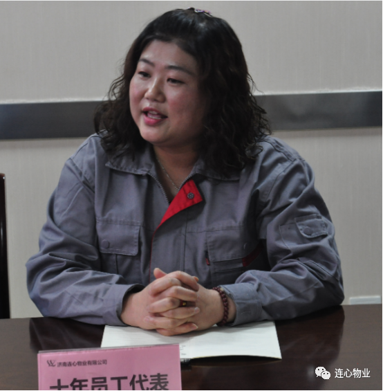 王俊鳳是濟南外國語(yǔ)學(xué)校項目部的一名保潔員,她在座談會(huì )中表示,連心物業(yè)是一個(gè)注重企業(yè)文化的公司,公司組織的各種文體活動(dòng)不僅豐富了員工的業(yè)余生活,而且學(xué)習了知識,交流了感情,讓員工與公司心連心,勁往一處使,共同發(fā)展,共同進(jìn)步。