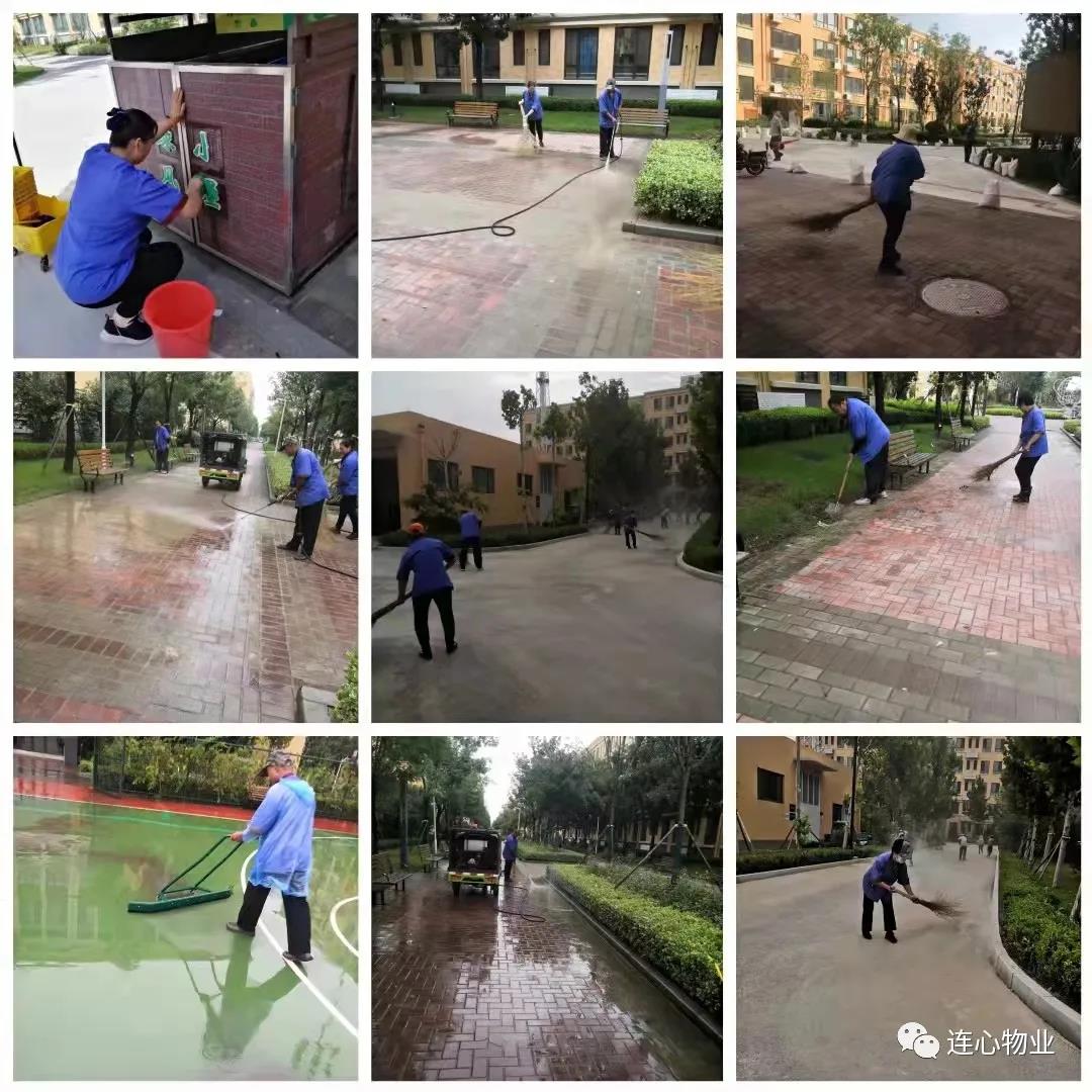 校園外圍衛生也是開(kāi)學(xué)前最為困難的工作,暑假施工方對道路污染較嚴重,因工期臨近開(kāi)學(xué),在時(shí)間緊任務(wù)重的情況下,我們緊急召集所有保潔人員對道路進(jìn)行清掃和沖刷,在大家共同努力下又呈現出了一個(gè)干凈、整潔、明亮、充滿(mǎn)生機的校園。保潔是最基礎的工作,有時(shí)冒著(zhù)酷暑,有時(shí)冒著(zhù)風(fēng)雨,但是我們不怕苦不怕累,做好學(xué)校的后勤保障工作是我們連心物業(yè)人的責任和使命,廣大師生能在干凈的校園里學(xué)習和生活也是我們最大的心愿,看到他們滿(mǎn)足的笑容是我們最大的欣慰。
