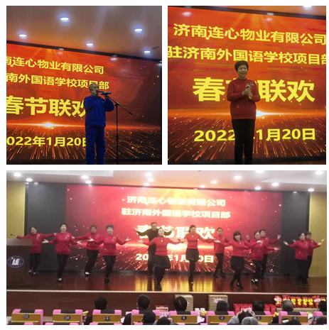 豪情歡歌辭舊歲,喜氣開(kāi)篇迎新年,2022年1月20日下午,濟南連心物業(yè)有限公司駐濟南外國語(yǔ)學(xué)校項目“穿上夢(mèng)想 共盼春來(lái)”主題春節聯(lián)歡在外國語(yǔ)學(xué)校報告廳舉行,濟南外國語(yǔ)學(xué)校校長(cháng)劉新利、黨委書(shū)記劉漢路、副校長(cháng)姜明、副校長(cháng)張紀余、校長(cháng)助理丁森、工會(huì )主席劉培虎、辦公室主任葛浩等領(lǐng)導應邀出席,公司副總經(jīng)理曹立及外國語(yǔ)學(xué)校項目部全體員工歡聚一堂、共度聯(lián)歡。