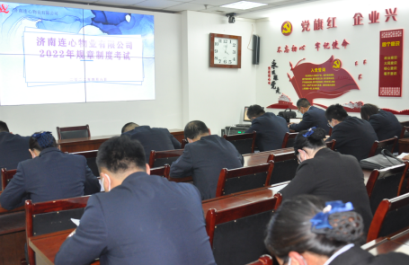 “無(wú)以規矩、不成方圓”,任何一個(gè)正規的企業(yè)都必定有其相適宜的規章、制度,規章是保證一個(gè)企業(yè)快速高效運轉的前提保障。遵守公司的規章、制度是我們認同這個(gè)公司的一種最為具體的直接表現。為更好的督促管理人員對企業(yè)制度的掌握情況,2022年4月8日下午16:00,濟南連心物業(yè)有限公司2022年上半年規章制度考試在濟南連心職業(yè)培訓學(xué)校2307會(huì )議室舉行。公司高管、部門(mén)經(jīng)理、項目經(jīng)理、項目副經(jīng)理、辦公室人員、項目?jì)惹诘?0余人參加了此次考試,此次考試采用筆試閉卷的形式進(jìn)行。