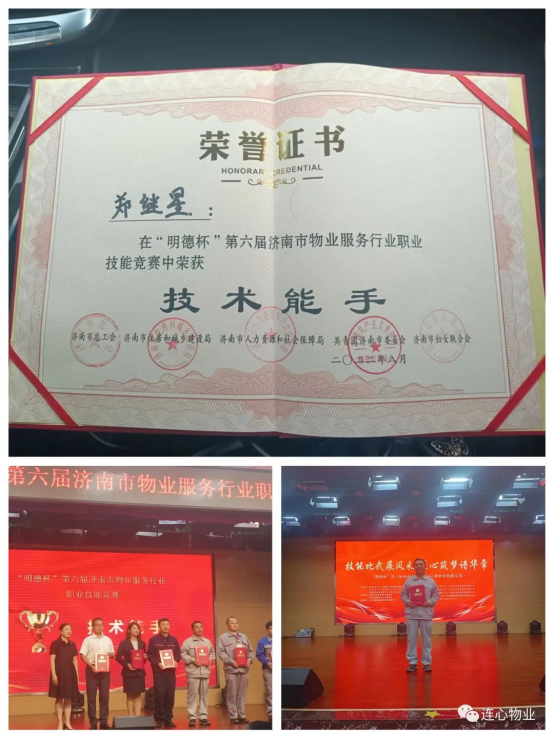 為弘揚工匠精神,進(jìn)一步提升物業(yè)服務(wù)從業(yè)人員的業(yè)務(wù)技能,展示物業(yè)服務(wù)行業(yè)的專(zhuān)業(yè)形象和精神風(fēng)貌,8月26-27日,“明德杯”第六屆濟南市物業(yè)服務(wù)行業(yè)職業(yè)技能競賽在山東現代物業(yè)管理專(zhuān)修學(xué)院隆重召開(kāi)。濟南連心物業(yè)有限公司、濟南產(chǎn)發(fā)物業(yè)有限公司參加此次競賽。濟南產(chǎn)發(fā)連心物業(yè)管理有限公司電工鄭繼星獲得電工賽項第3名的好成績(jì)并榮獲“技術(shù)能手”榮譽(yù)稱(chēng)號。