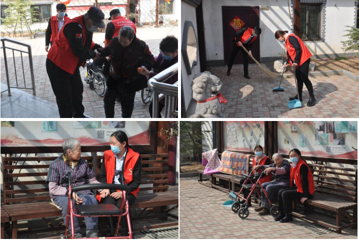 團員青年為老人們送上準備好的慰問(wèn)物品,養老院負責人向團員青年介紹了老人的基本情況。隨后,部分青年團員陪伴老人到活動(dòng)區曬太陽(yáng)并老人聊天,叮囑他們注意身體,保持樂(lè )觀(guān)心態(tài),不一會(huì )老人們便和團員青年熟絡(luò )了起來(lái),老人臉上洋溢著(zhù)快樂(lè )的笑容。另一部分青年團員們對養老院園區開(kāi)展衛生清掃等清潔活動(dòng),為老人們營(yíng)造了一個(gè)更加清新、干凈、溫馨的生活環(huán)境。