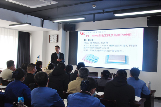 濟南連心培訓職業(yè)學(xué)校資深講師吳建軍首先對學(xué)員進(jìn)行保潔專(zhuān)業(yè)知識的理論培訓。培訓以“7S管理”(整理、整頓、清掃、清潔、素養、安全、提高)為切入點(diǎn),結合學(xué)員日常工作實(shí)際,詳細講解了保潔工作的標準化工作方法。以抹布分區分色,“一床一巾、一桌一布”為例,強基礎、抓細節、補短板,力爭為廣大業(yè)主提供更為系統化、標準化和人性化的服務(wù)。