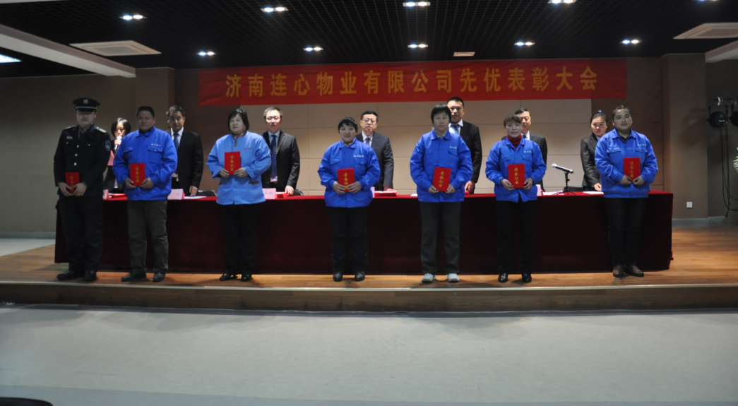 2015年12月24日,“濟南連心物業(yè)有限公司第九屆先優(yōu)表彰大會(huì )”在山東省文化館音樂(lè )廳隆重舉行。濟南連心物業(yè)有限公司黨支部書(shū)記、總經(jīng)理王宏勇同志、常務(wù)副總經(jīng)理戚圣輝同志、副總經(jīng)理孟令乾同志、工會(huì )主席吳建軍同志、總經(jīng)理助理曹立同志以及項目經(jīng)理、項目主管、優(yōu)秀員工等70余人參加了活動(dòng)。