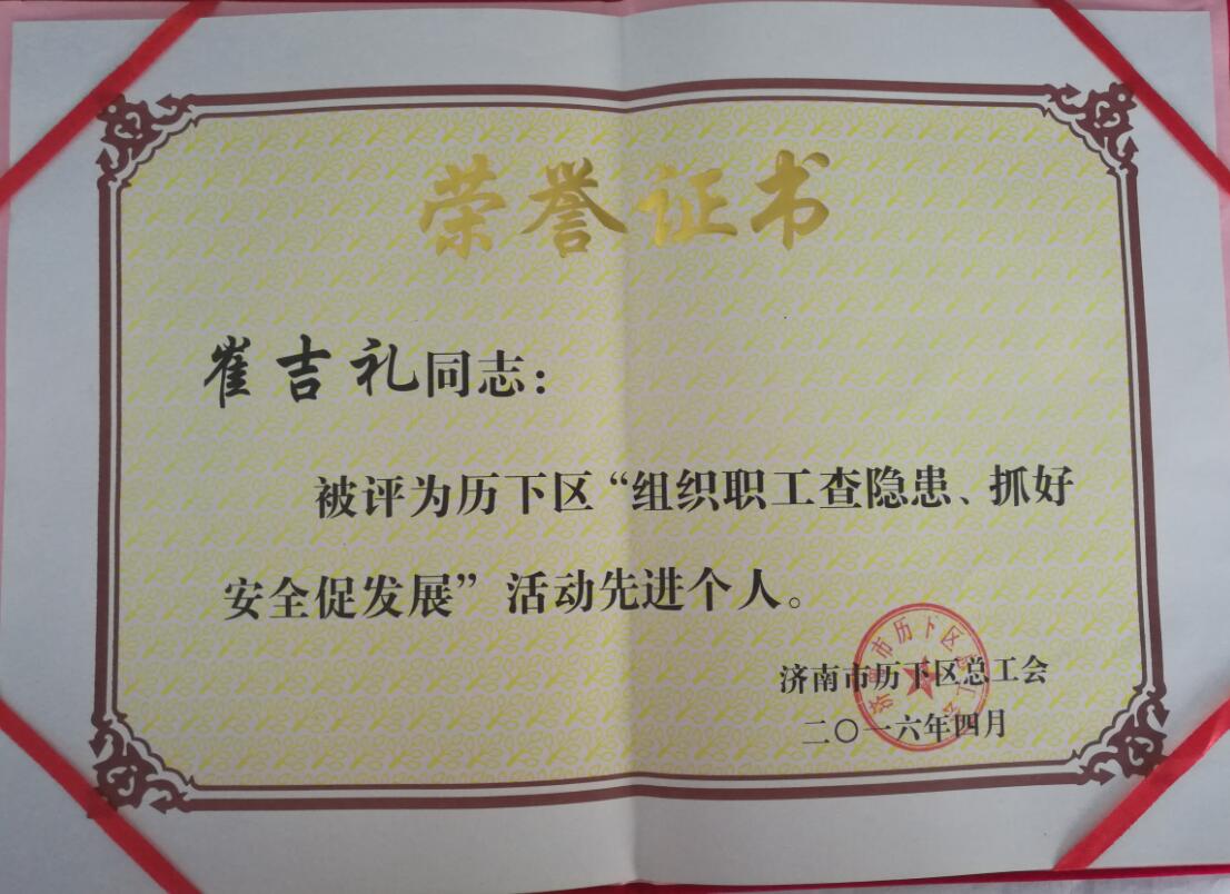 公司員工崔吉禮榮獲“職工查隱患活動(dòng)先進(jìn)個(gè)人