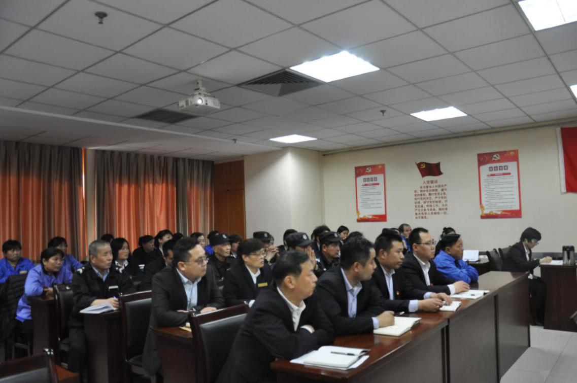 全體與會(huì )黨員等認真聽(tīng)黨課