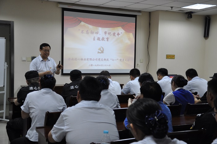 為紀念中國共產(chǎn)黨建黨98周年,濟南連心物業(yè)有限公司黨支部于2019年6月28日下午13:30舉行了“不忘初心,牢記使命”主題教育慶“七一”系列活動(dòng)。公司黨支部全體黨員、入黨積極分子、一級崗位管理人員54人參加了本次慶?;顒?dòng)。