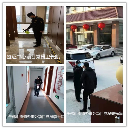 駐簽證中心項目黨員衛長(cháng)凱、千佛山街道辦事處黨員姜光海、李士河進(jìn)行疫情防控工作